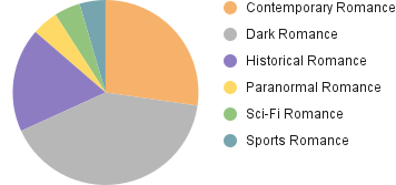 π 6 books were contemporary, 9 were dark, 4 were historical, 1 was paranormal, 1 was sci-fi and 1 book was sports - all were romance